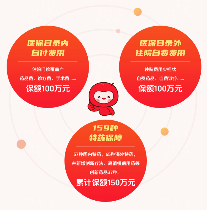 产品由政府指导监督,确保应赔尽赔,保障紧密衔接医保,覆盖医保内自付、医保外住院自费及159种海内外特药费用三大保障,为患者家庭减负。