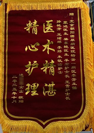 2025年第四季度,北京朝阳糖尿病医院收到锦旗10面,患者感谢信数百封。